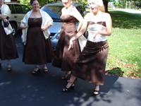 And then, of course, there was the kneeling. Four individual kneelers were set up at the front of the church, two in the center for Jennifer and Trevor and one on each side of those for the best man and the maid of honor... Sigh, yes folks, I was the maid of honor. So what's wrong with kneelers? Well, they were provided for us in lieu of seating. When the congregation got to sit down, we had to kneel. For those of you who didn't know me when I was twelve, this is a recipe for fainting. I first fainted in Catholic grade school during Stations of the Cross, wherein there is a grand volley of kneeling, standing, kneeling, standing, kneeling, standing... I've since learned the signs and I rarely faint because even when I do feel it coming on, I know how to head it off at the pass. This method usually involves sitting down and sticking my head between my knees, a practical impossibly up at the altar with only a kneeler to my name. All emotion-rousing thoughts of family-togetherness, rites of passage, turns of generation... all got buried under a running thought-tirade of, "Oh God, please don't let me faint... how long is this going to take... if I do have to faint, what's proper etiquette here?... do I tap Jenn on the shoulder during the vows and say 'don't mind me, I'm just slipping into the pew so as to avoid collapsing on the altar.' "