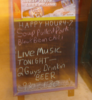 When we ran into Smooth's childhood babysitter in an advanced stage of drunkenness, it galvanized our resolve to move on to a different bar. From there we ended up at the Double Diamond. It was significantly less crowded, and absent a DJ boasted live entertainment in the form of a band called 2 Guys Drinking Beer. They sang mostly covers, nothing to object to, certainly, but they produced rather a conundrum. As it turned out, 2 Guys Drinking Beer was in fact comprised of three guys. Was this a case of one guy being a teetotaler? Or perhaps upon adding the third guy, they did not want to risk the damage a name change can do to an established band name? The conundrum persists.